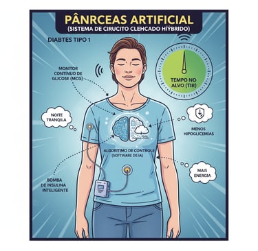 O Pâncreas Artificial (ou, mais precisamente, Sistema de Circuito Fechado Híbrido) é uma tecnologia que busca imitar a função do pâncreas de uma pessoa sem diabetes. Ele é chamado de "híbrido" porque, na maioria dos modelos atuais, o usuário ainda precisa inserir manualmente a quantidade de carboidratos que vai consumir antes das refeições (bolus de refeição), mas o sistema automatiza a entrega de insulina basal e faz correções para níveis altos de glicose.